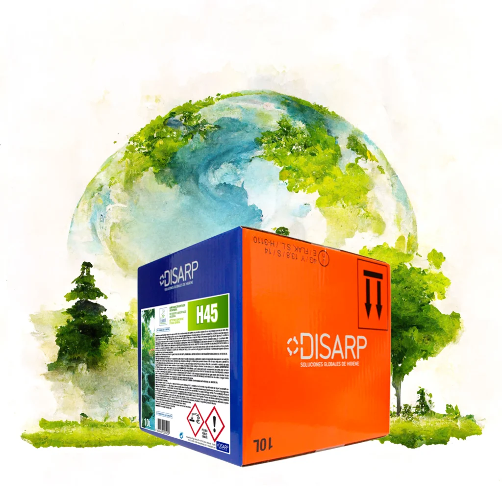 ECODISBOX es el sistema de productos ultraconcentrados de DSP, diseñado para ofrecer soluciones de limpieza eficientes, económicas y respetuosas con el medio ambiente. Gracias a su formato «bag-in-box» de 10 litros, se pueden obtener hasta 500 botellas listas para usar, reduciendo significativamente el uso de envases y optimizando el espacio de almacenamiento.