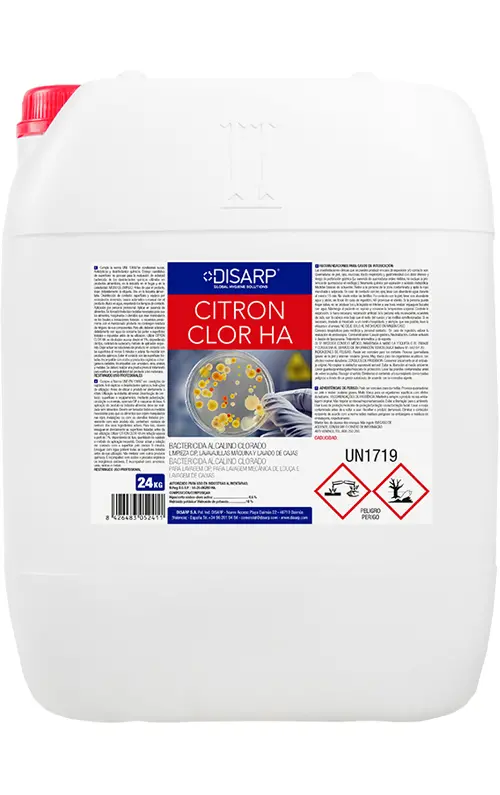 Detergente desinfectante clorado no espumante de elevada alcalinidad. Desinfeccion de contacto: superficies y equipos, mediante pulverizacion, circulacion o inmersion, sistemas CIP y máquinas automáticas. Limpia, desengrasa y desinfecta en la misma operación.