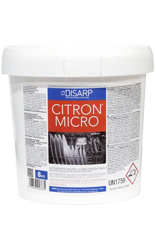 Detergente sólido en polvo de máxima concentración para el lavado automático de vajilla, concebido para nuestro sistema de dosificación automática MICROSISTEM (tecnología patentada), cuando las aguas de aporte sean de media dureza. Su concentración es tan alta que la dosis a emplear son siempre mínimas (unas cuatro veces menos que la de detergentes convencionales).