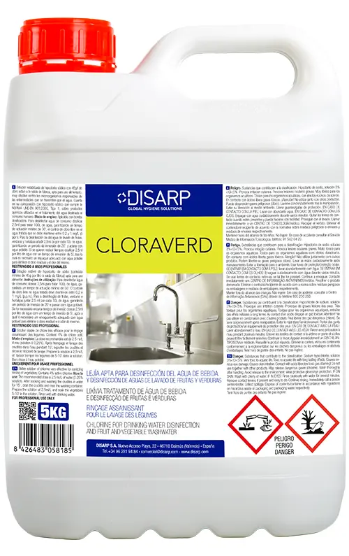 Es una solución de hipoclorito sódico apta para uso alimentario, muy efectiva contra los microorganismos responsables de las enfermedades que se transmiten por el agua. Solución elaborada a partir de materias primas que cumplen la NORMA UNE-EN 901:2000, Tipo 1, sobre productos químicos utilizados en el tratamiento del agua destinada al consumo humano.