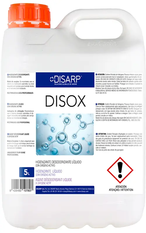 Disolución de Peróxido de hidrógeno al 7,5 %. Indicado para la higiene y desodorización de todo tipo de superficies mediante equipos de pulverización o nebulización.