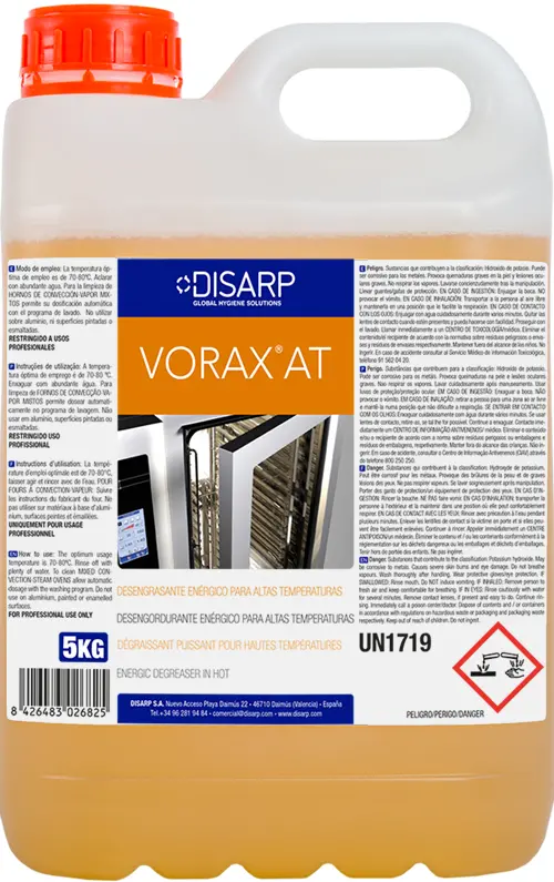 Se trata de un formulado de alta alcalinidad que cuenta con un gran poder desengrasante y emulsionante de grasas persistentes y carbonizadas presente en planchas de cocina y hornos. Aumenta considerablemente su poder desengrasante si se aplica en caliente, sin desprender vapores. No sobrepasar la temperatura de 80 C en la superficie a limpiar.